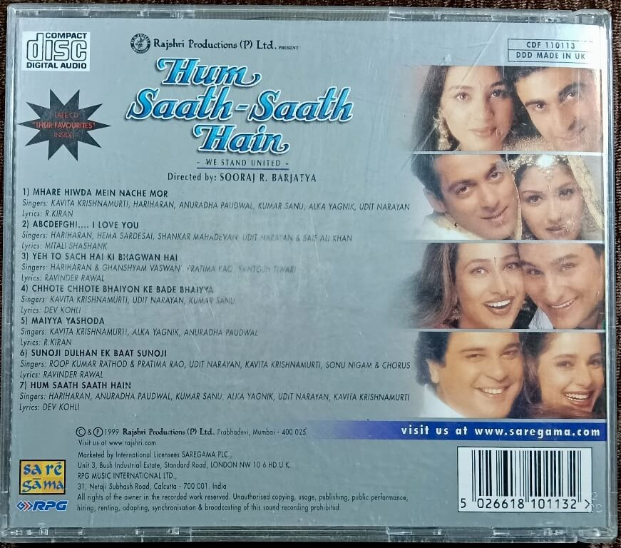 | 7. Hum Saath Saath Hain | : | Hariharan, Anuradha Paudwal, Kumar Sanu, Alka Yagnik, Udit Narayan, Kavita Krishnamurti |