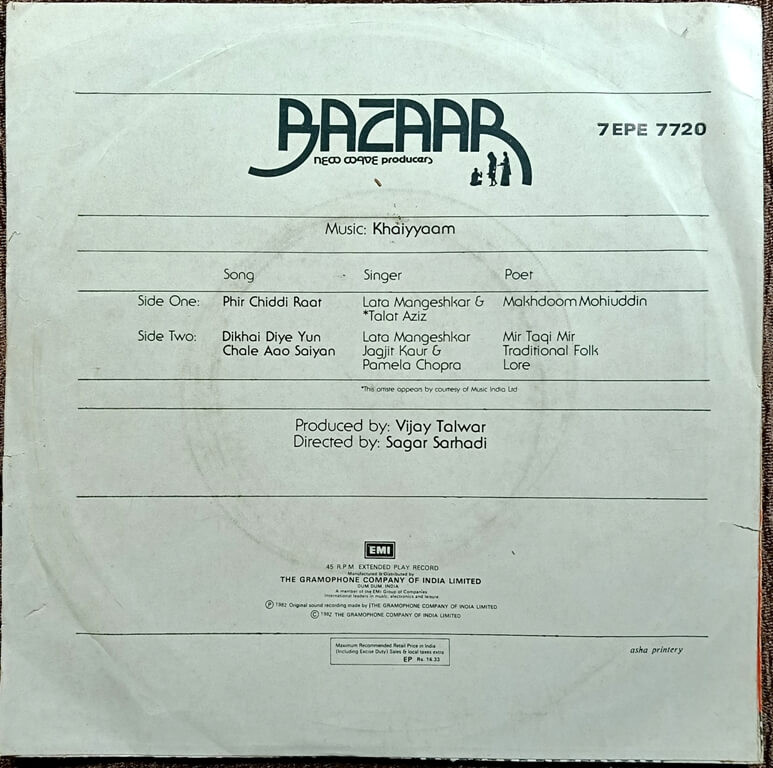 | : | • From the original soundtrack of the Hindi film Bazaar (1981) | |