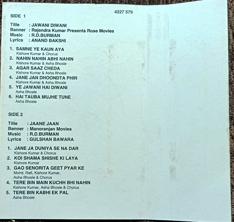 | A4. Jane Jan Dhoodta Hun | : | Kishore Kumar & Asha Bhosle |