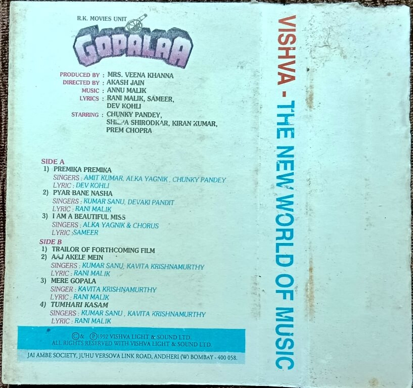 | B3. Mere Gopala | : | Kavita Krishbamurthy |