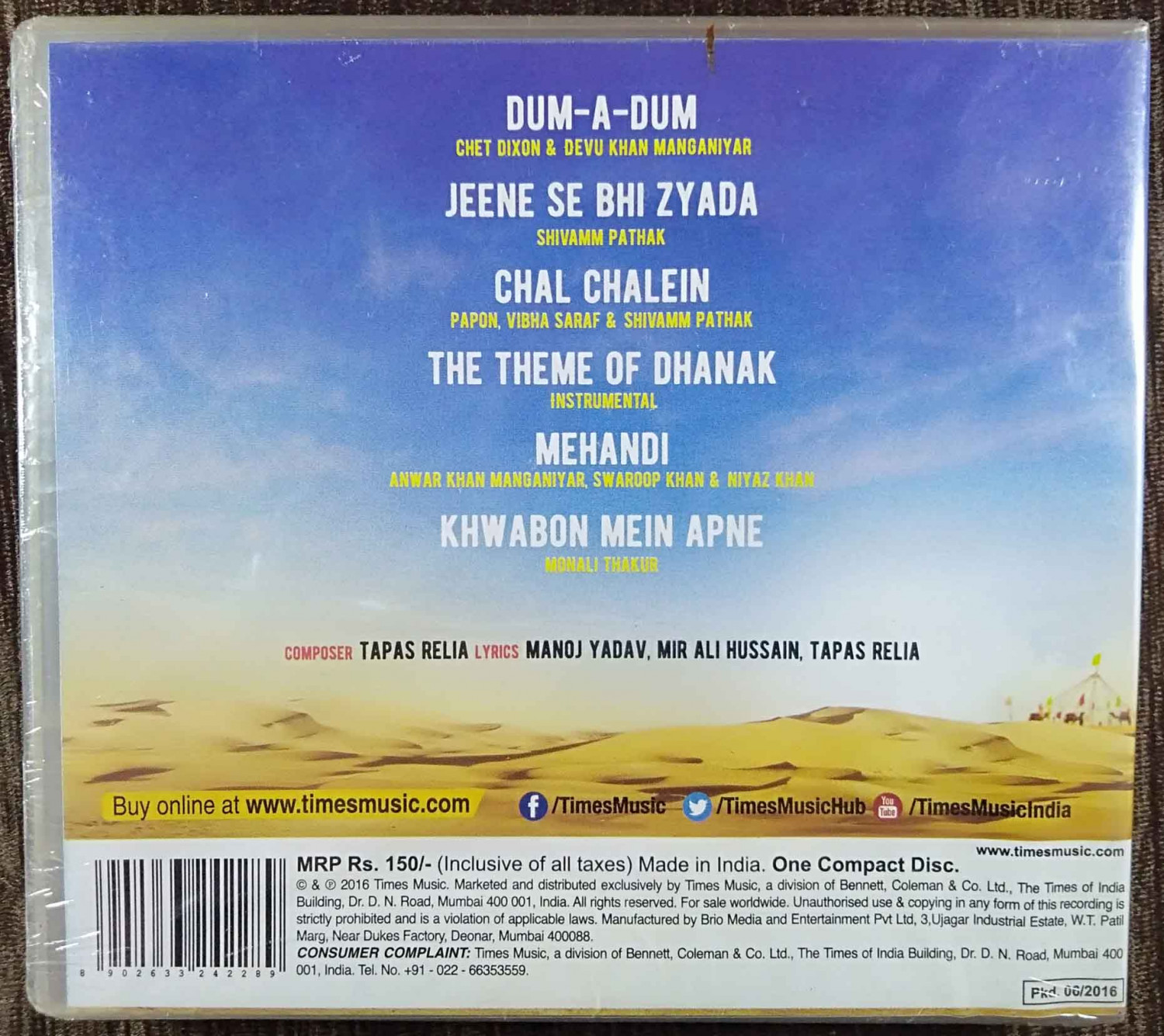 | Lyrics | : | Manoj Yadav, Mir Ali Hussain & Tapas Relia |