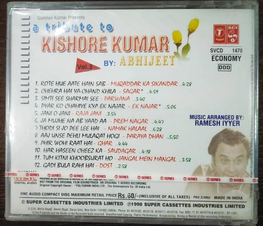 | Title | : | Abhijeet - A Tribute To Kishore Kumar Vol 3 |