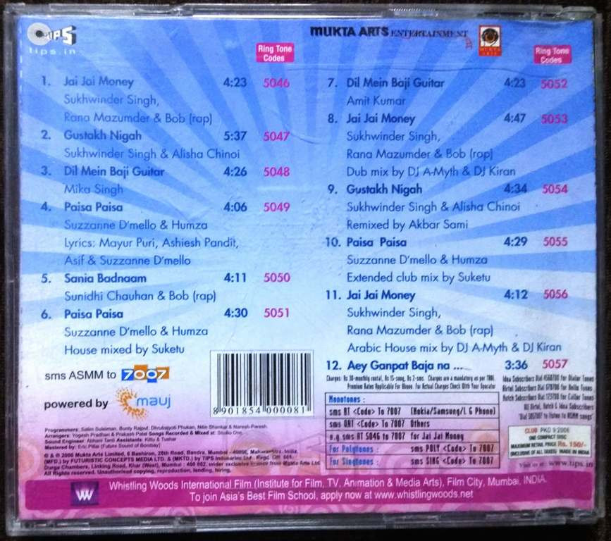 | 8. Jai Jai Money | : | Sukhwinder Singh, Rana Mazumder |