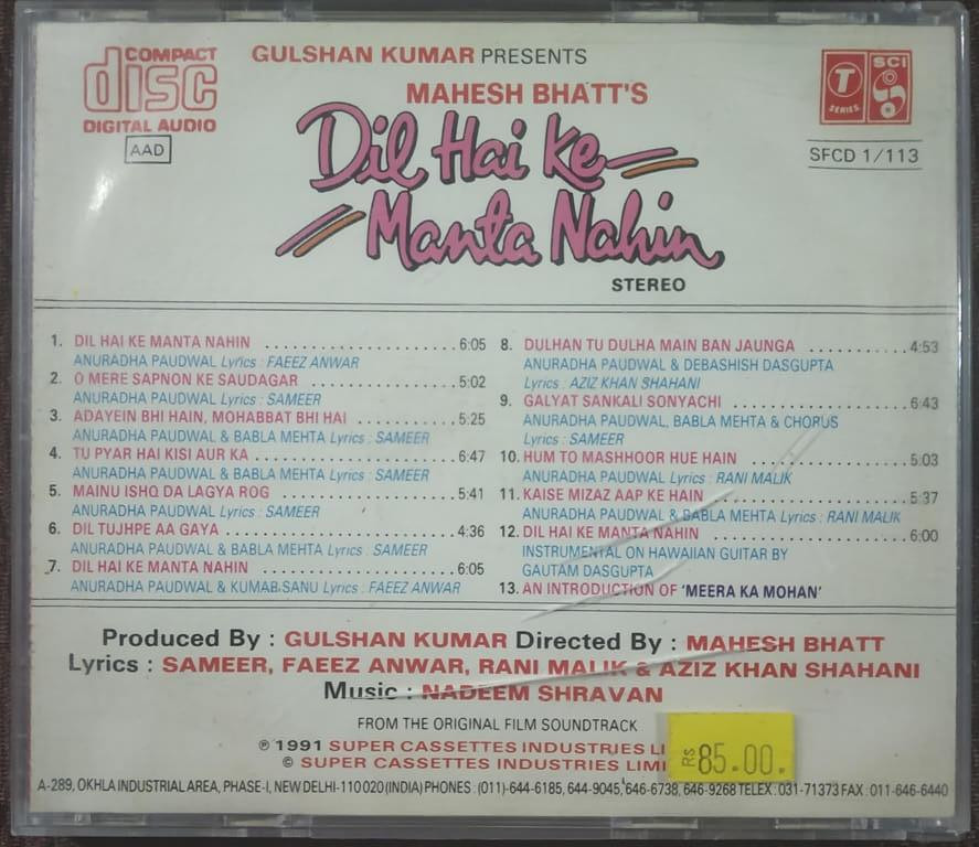 | 12. Dil Hai Ke Manta Nahin (Instrumental) | : | Nadeem Shravan |