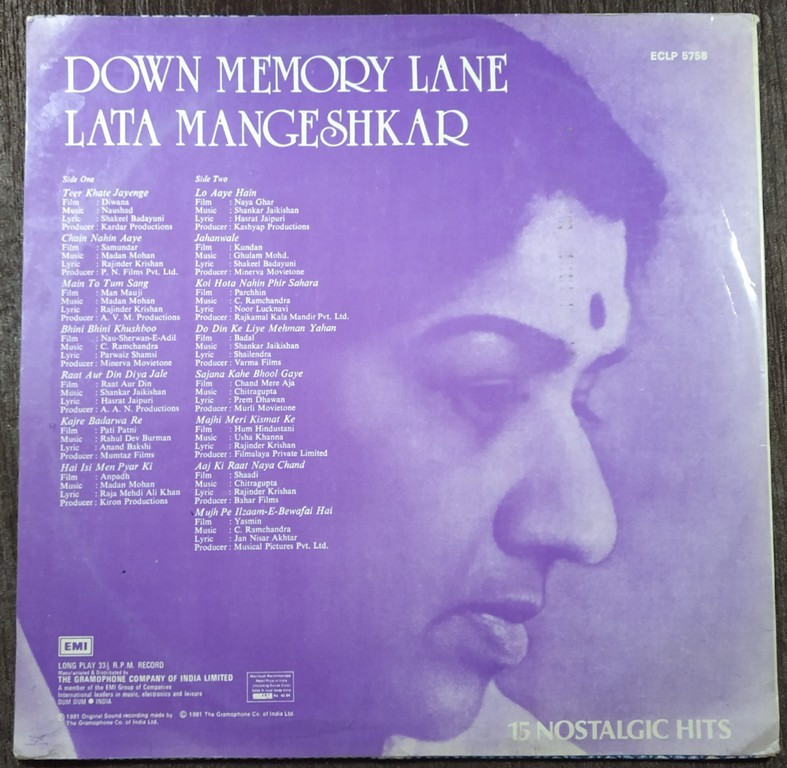 | Title | : | Lata Mangeshkar- Down Memory Lane |