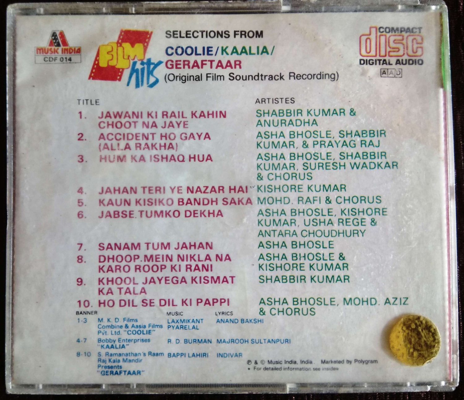 Coolie - Kaalia - Geraftaar (1983-1981-1985) Laxmikant-Pyarelal/R.D. Burman Pre-Owned Music India Audio CD