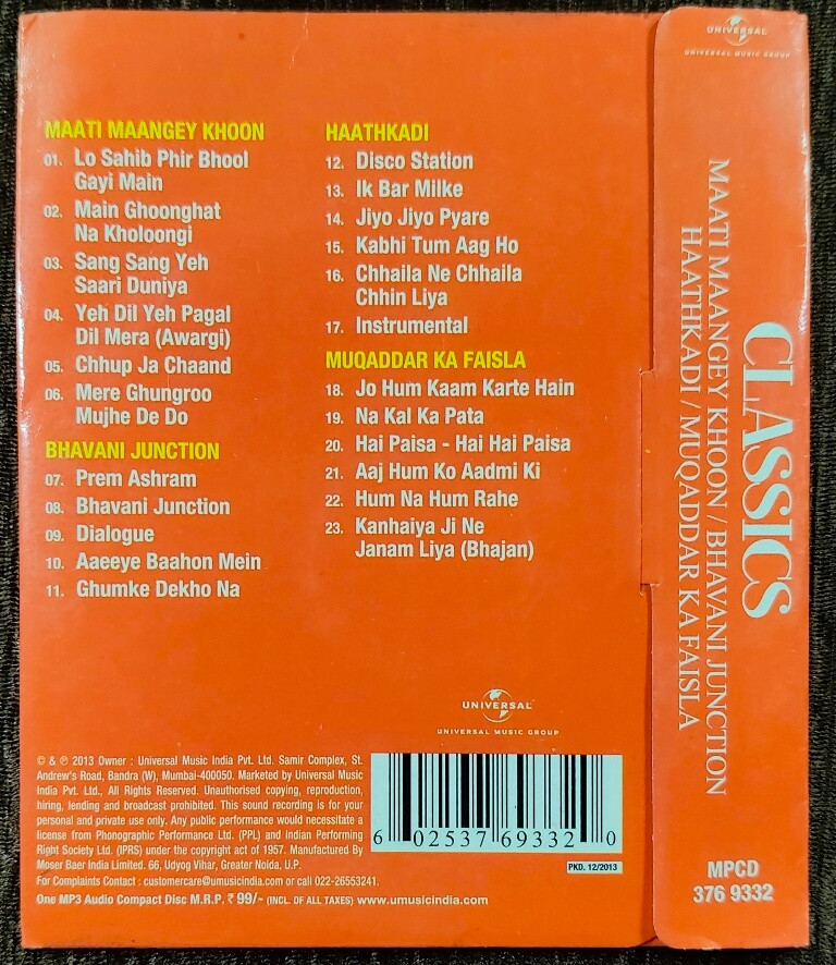 | Title | : | Classics - Maati Mangey Khoon / Bhavani Junction / Haathkadi / Muqaddar Ka Faisla |