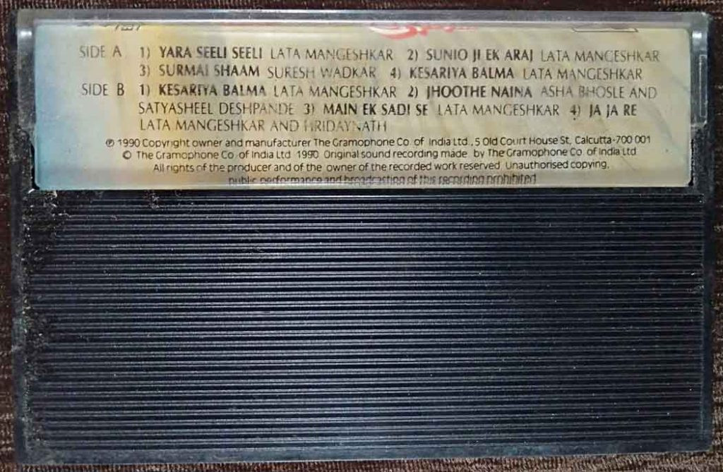 | 4. Ja Ja Re | : | Hridaynath Mangeshkar & Lata Mangeshkar |