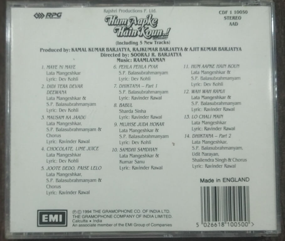 | 11. Hum Aapke Hain Koun | : | Lata Mangeshkar & S.P. Balasubrahmanyam |