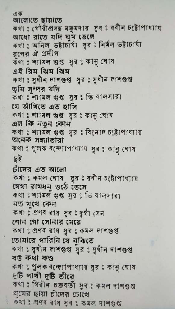 Bhattacharyya, Kanu Ghosh, Sudhin Dasgupta, Bhi Balasara, Binod Chatterjee,