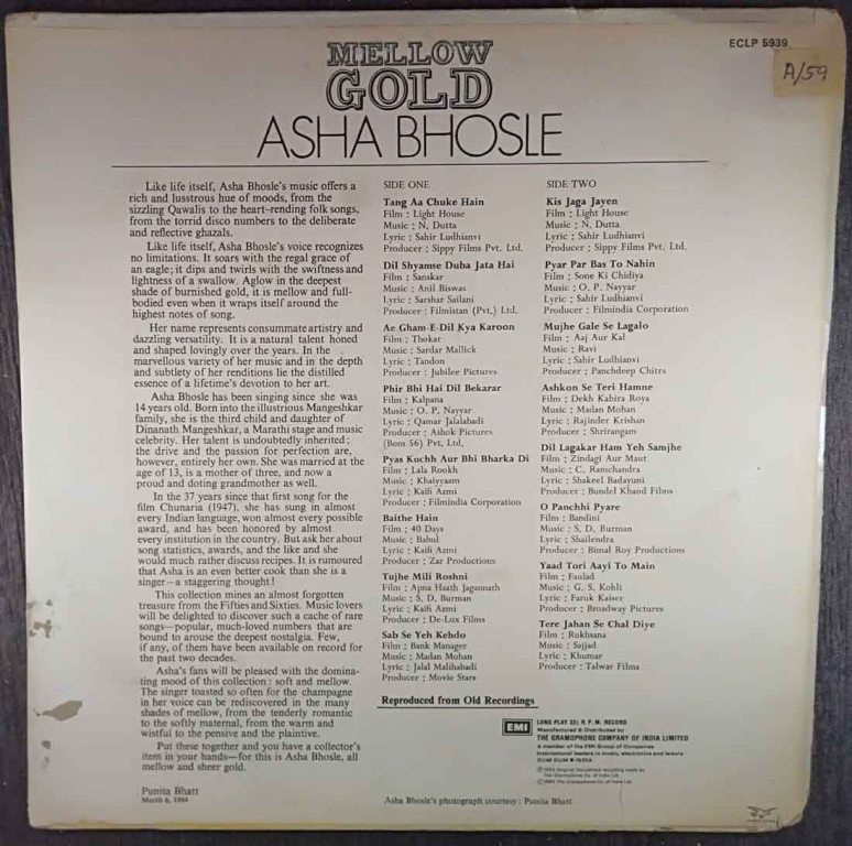 | Title | : | Asha Bhosle - Mellow Gold |