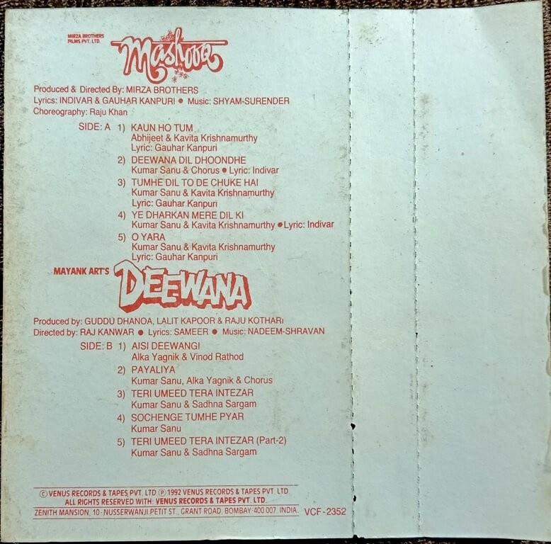 | Music Direction Of Deewana | : | Nadeem-Shravan |