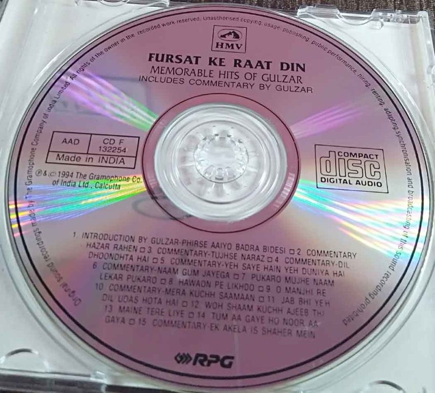 | Title | : | Gulzar – Fursat Ke Raat Din (Memorable Hits of Gulzar) - Includes Commentary Of Gulzar |