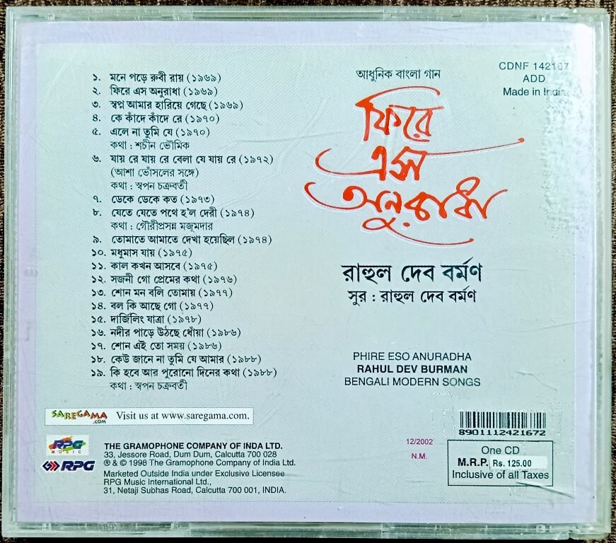 | Title | : | Rahul Dev Burman – Phire Eso Anuradha |