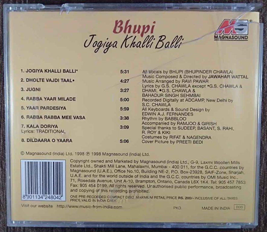 | 1. Jogiya Khalli Balli | : | Bhupi |