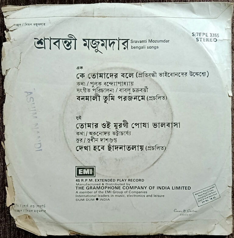 | B1. Tomar oi murgi posha bhalobasha | : | Lyrics: Arunoday Bhattacharya, Music: Sudhin Dasgupta |