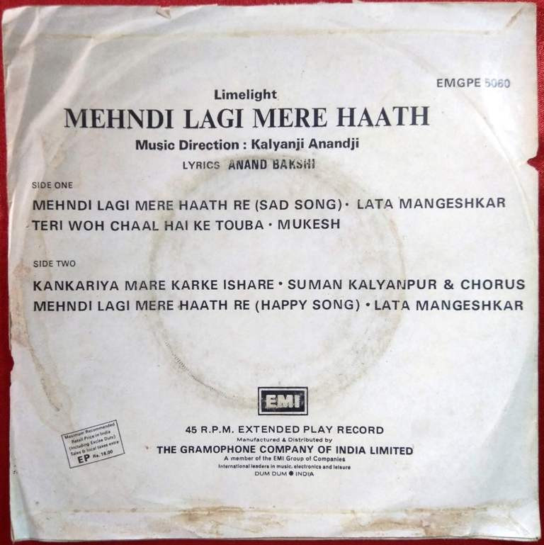 | 1. Mehdni Lagi Mere Haath Re (Sad Song) | : | Lata Mangeshkar |
