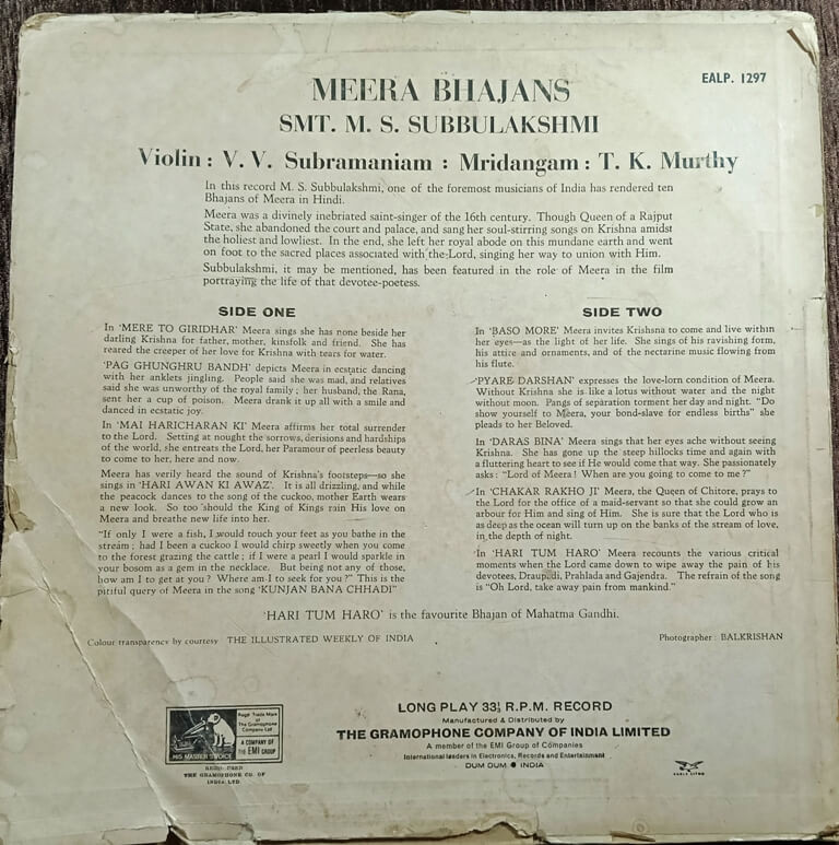 | Title | : | Smt. M.S. Subbulakshmi – Meera Bhajans |