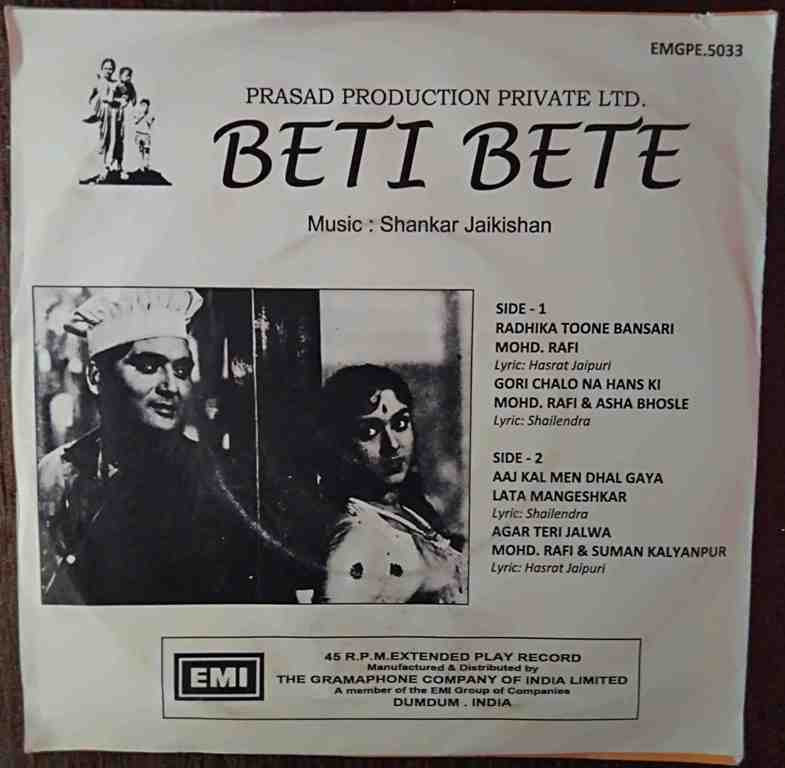 Beti Bete (1964) Shankar-Jaikishan Pre-Owned Vinyl, 7" EP Record