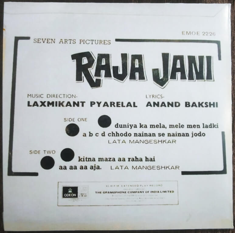 | A1. Duniya Ka Mela, Mele Men Ladki | : | Lata Mangeshkar |