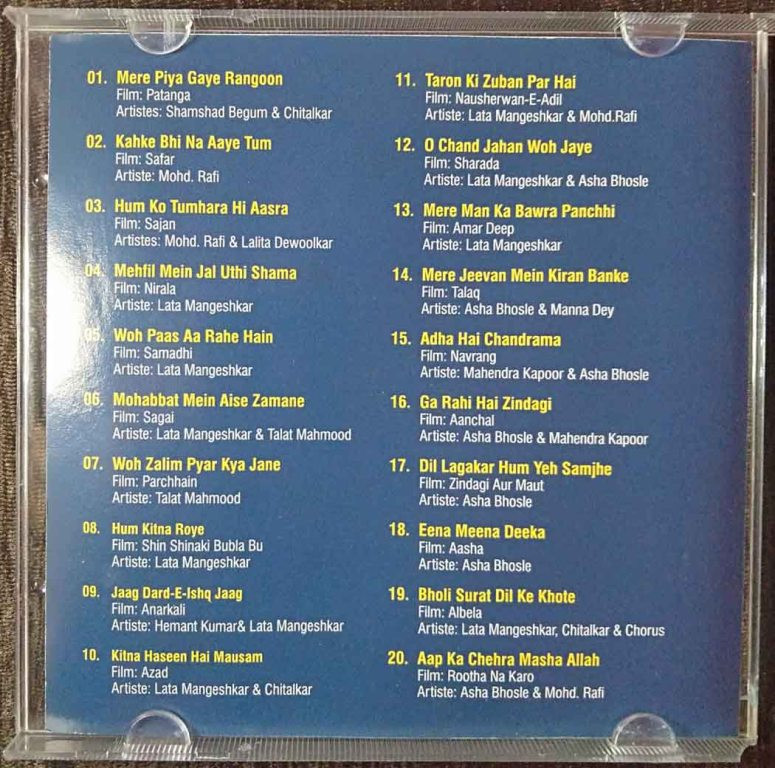 | 19. Bholi Surat Dil Ke Khote (Albela) | : | Lata Mangeshkar, Chitalkar & Chorus |