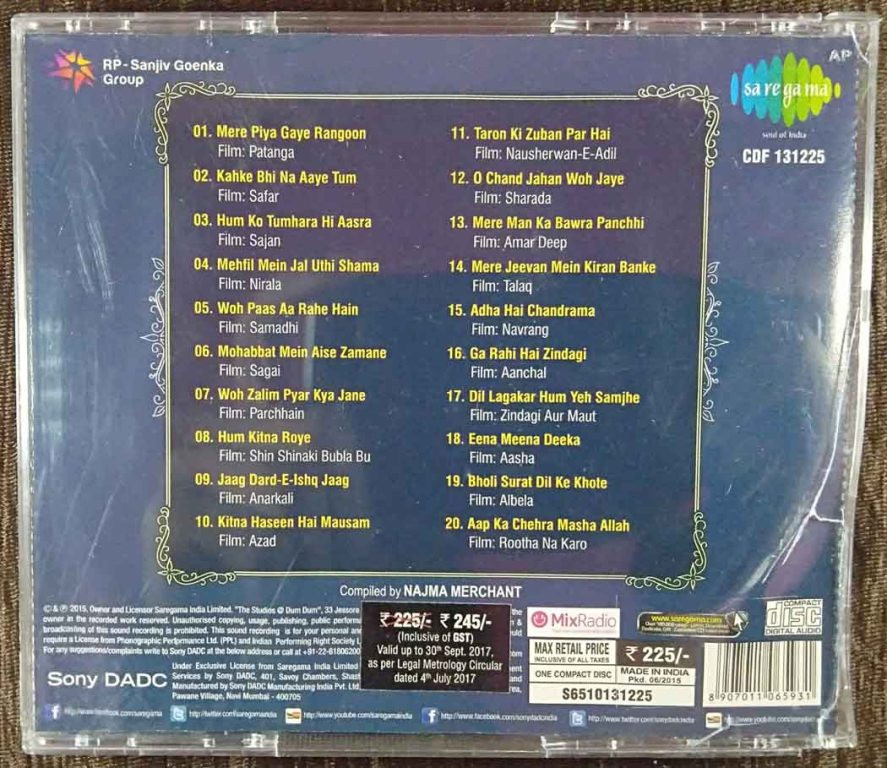 | 6. Mohabbat Mein Aise Zamane (Sagai) | : | Lata Mangeshkar & Talat Mahmood |