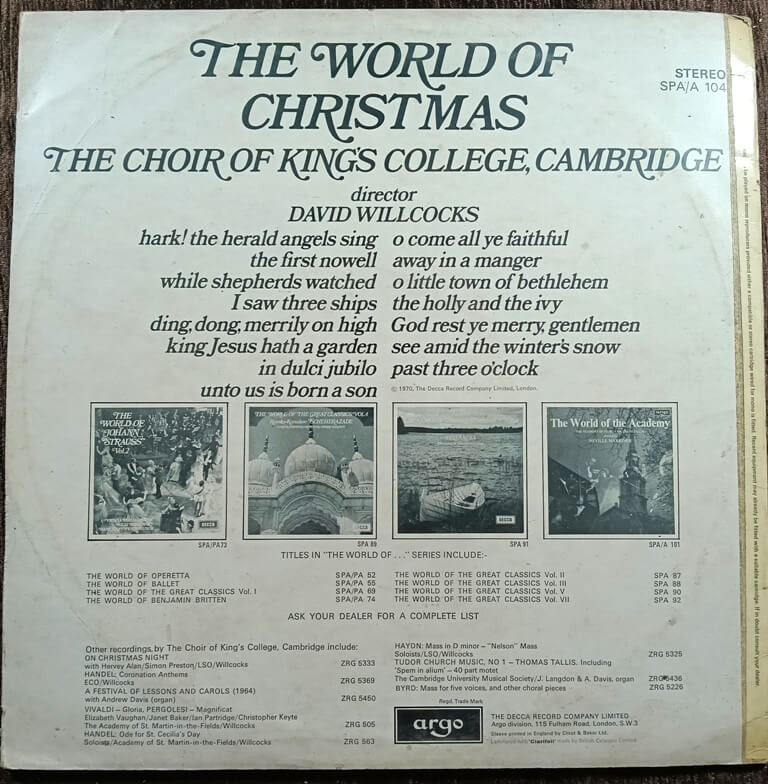 | Title | : | The Choir Of King's College, Cambridge Director David Willcocks – The World Of Christmas |