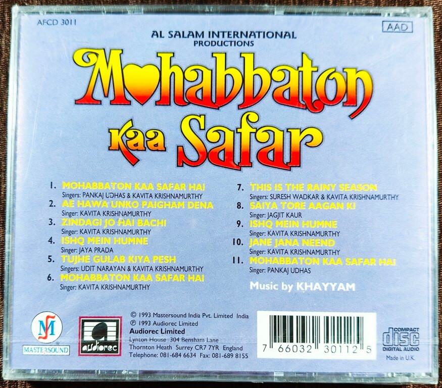 | 1. Mohabbaton Kaa Safar Hai | : | Pankaj Udhas & Kavita Krishnamurthy |