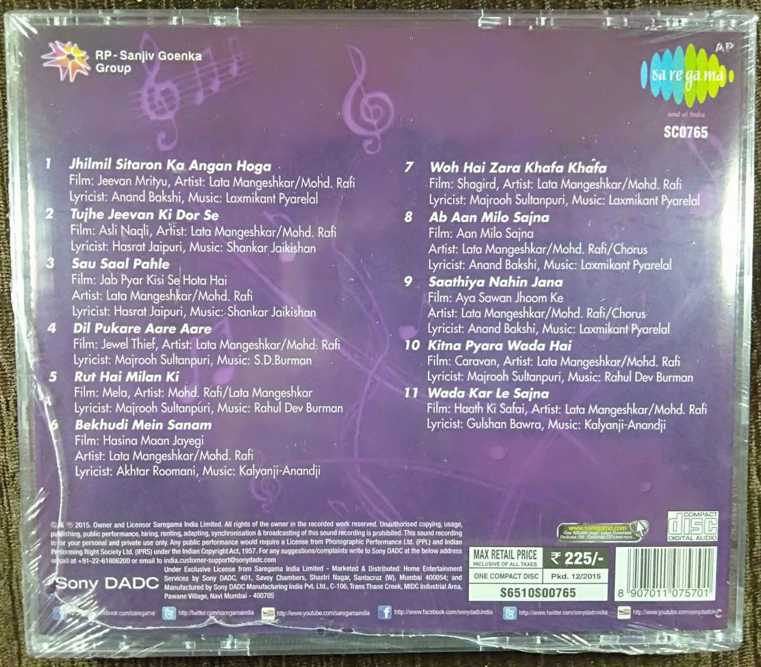 | 2. Tujhe Jeevan Ki Dor Se (Asli Naqli) | : | Lata Mangeshkar & Mohd. Rafi |