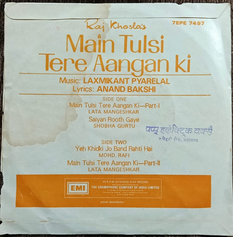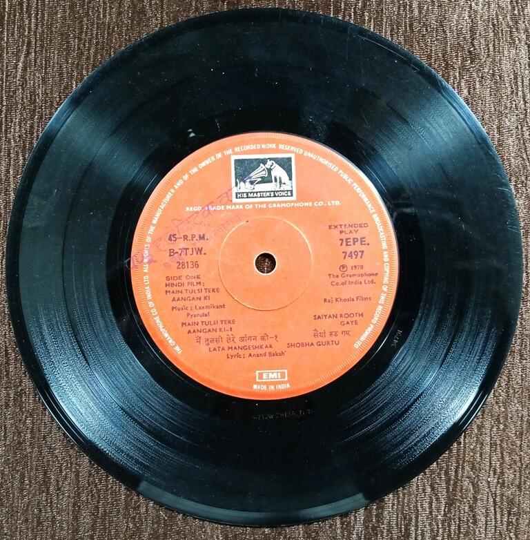 Main Tulsi Tere Aangan Ki (1978) Laxmikant-Pyarelal Pre-Owned HMV Vinyl, 7" EP Record