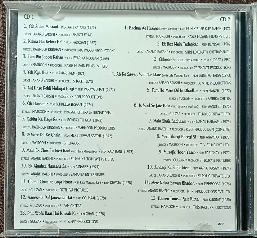 | 4. Ab Ke Sawan Main Jee Dare (with Lata Mangeshkar) | : | Jaise Ko Taisa (1973) |
