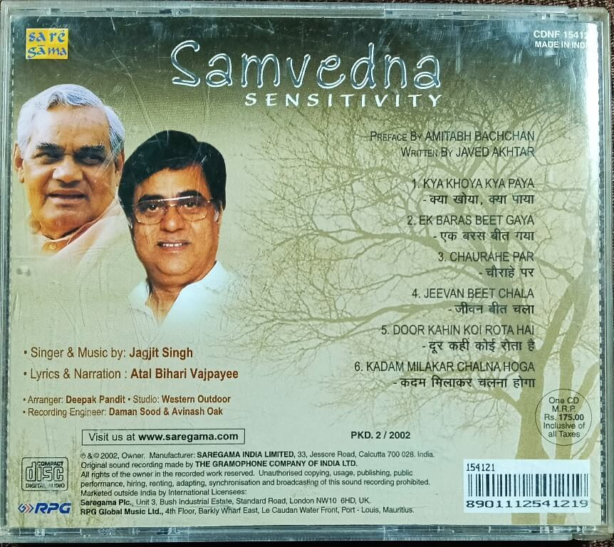 | Title | : | Jagjit Singh, Atal Bihari Vajpayee – Samvedna (Sensitivity) |
