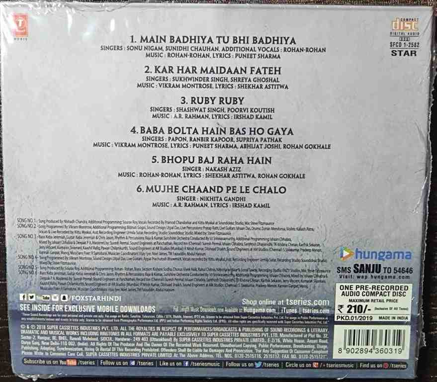 | 2. Kar Har Maidaan Fateh | : | Sukhwinder Singh & Shreya Ghoshal |