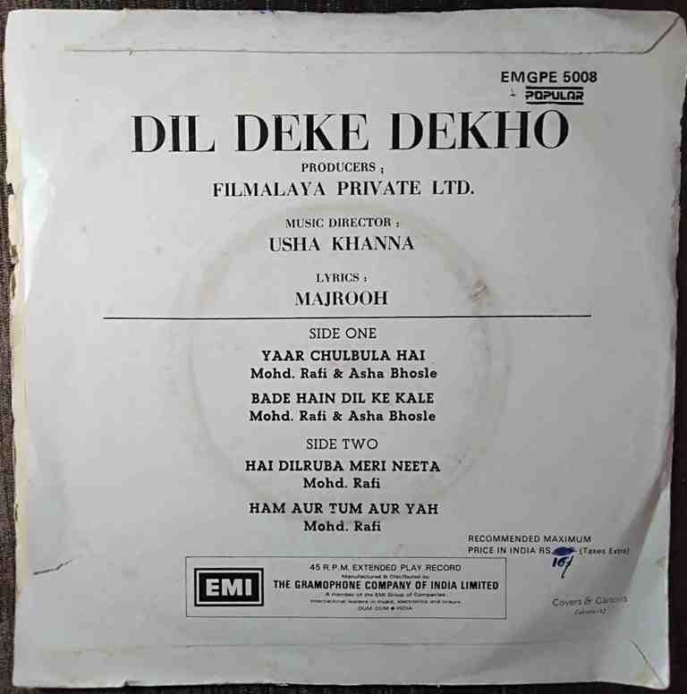| 2. Bade Hain Dil Ke Kale | : | Mohd. Rafi & Asha Bhosle |