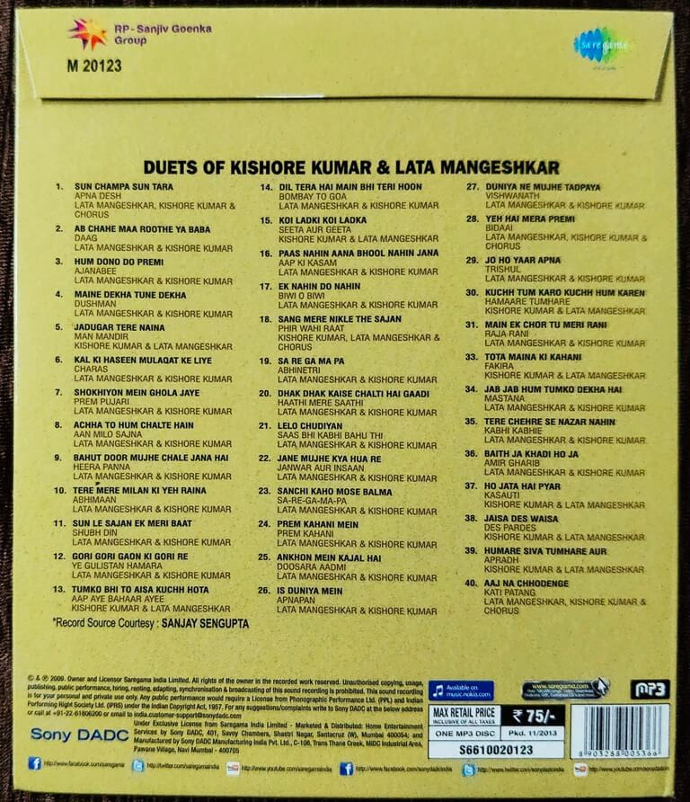 | Title | : | Kishore Kumar & Lata Mangeshkar - Duets Of Kishore Kumar & Lata Mangeshkar |