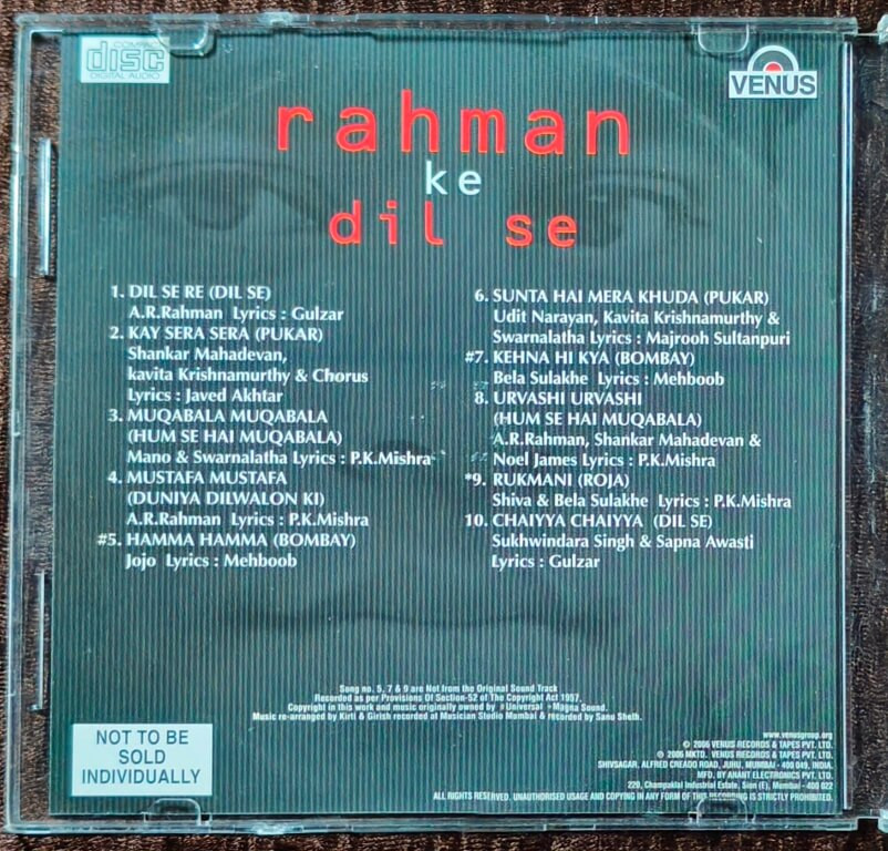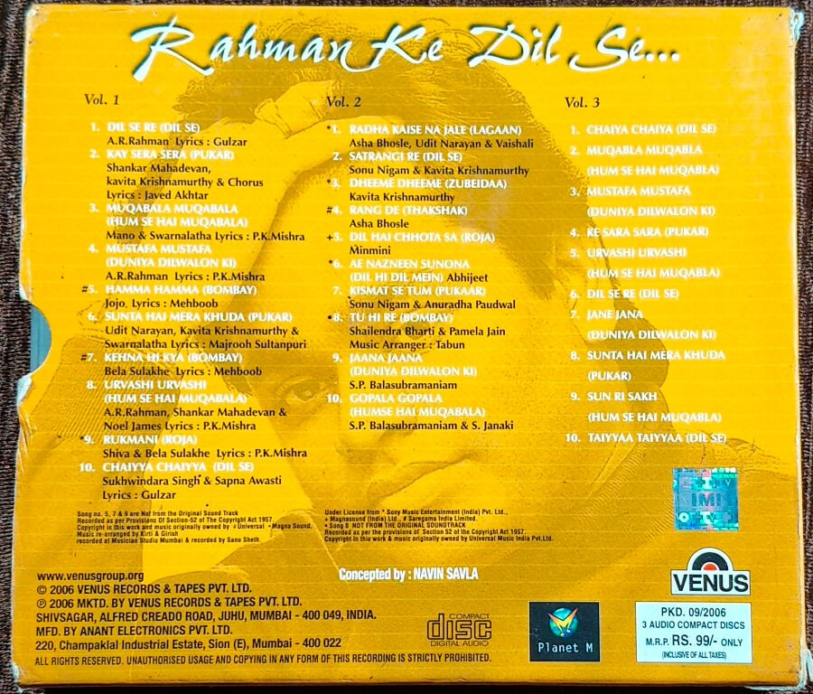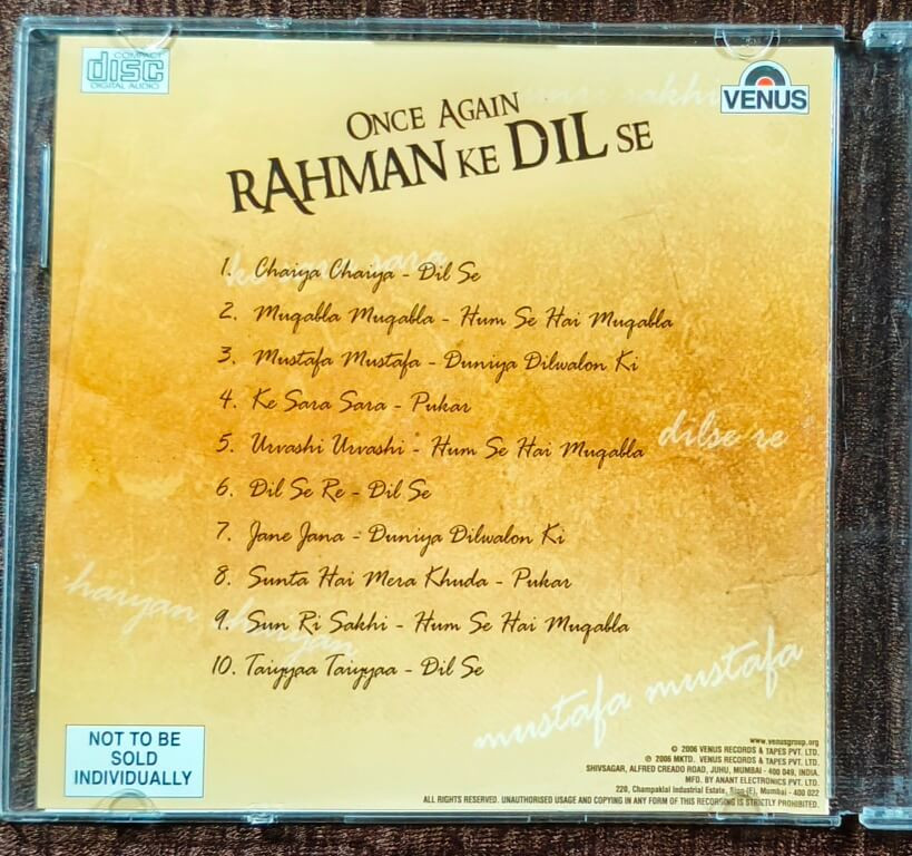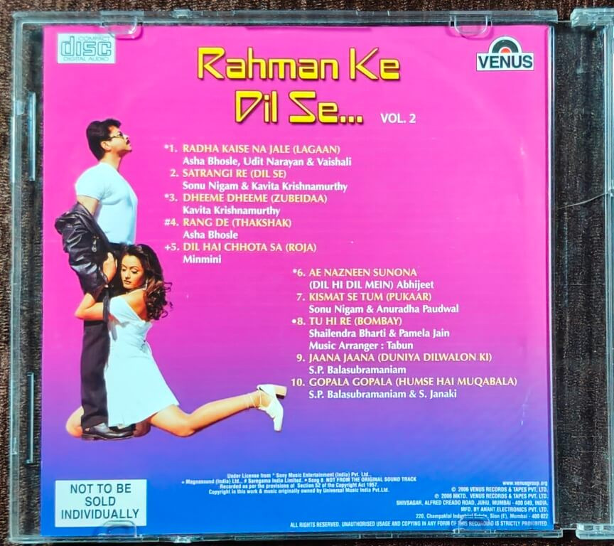 | 2. Satrangi Re (Dil Se) | : | Sonu Nigam & Kavita Krishnamurthy |