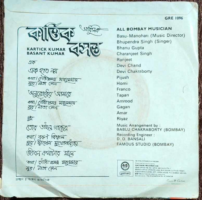 | Title | : | Kartick Kumar & Basant Kumar - Bengali Modern Song |