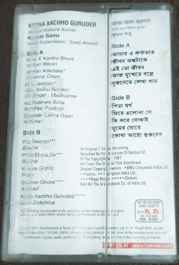 | Title | : | Kumar Sanu - Kotha Aachho Gurudeb -Best of Kishore Kumar on Kumar Sanu's Voice |