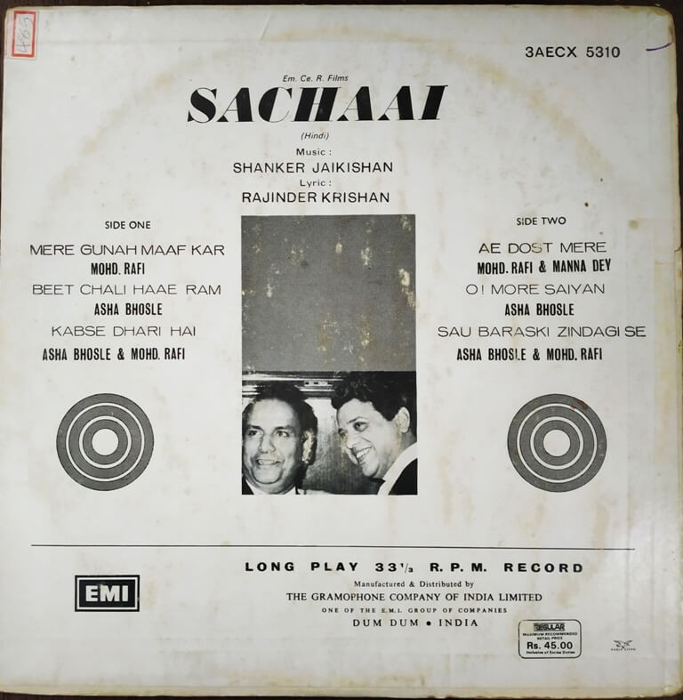 | 1. Ae Dost Mere | : | Mohd. Rafi & Manna Dey |