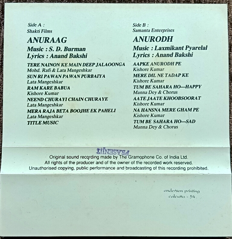 | Lyrics of Anurodh | : | Anand Bakshi |