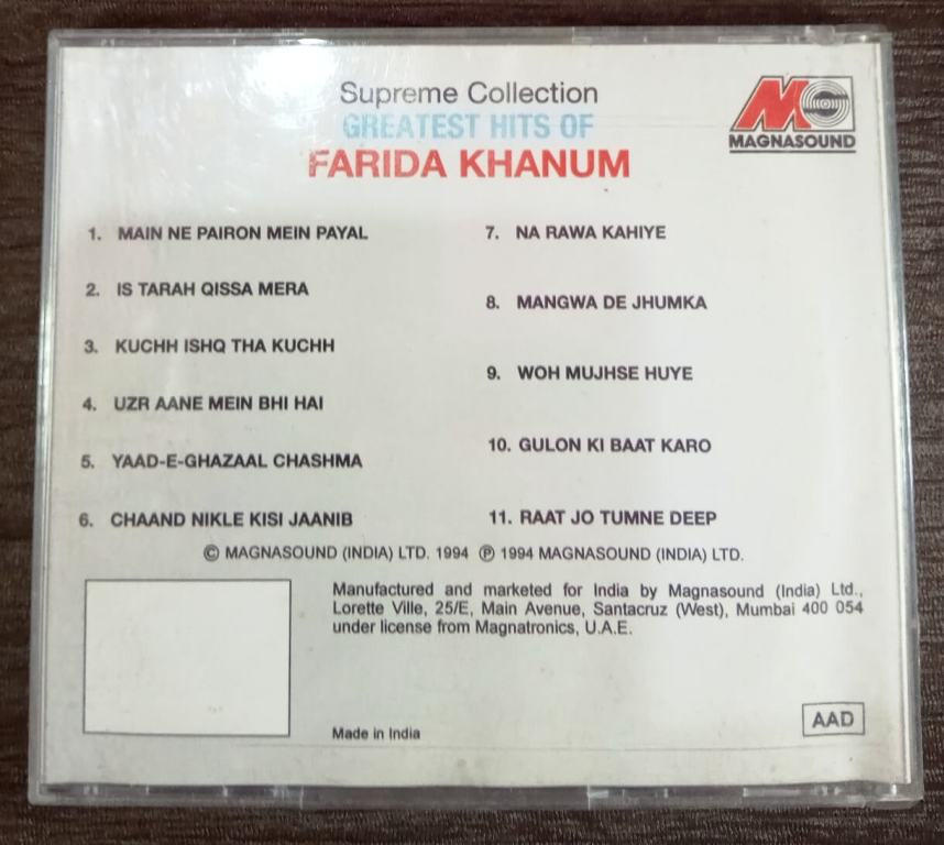 | Title | : | Farida Khanum - Supreme Collection - Greatest Hits Of Farida Khanum |