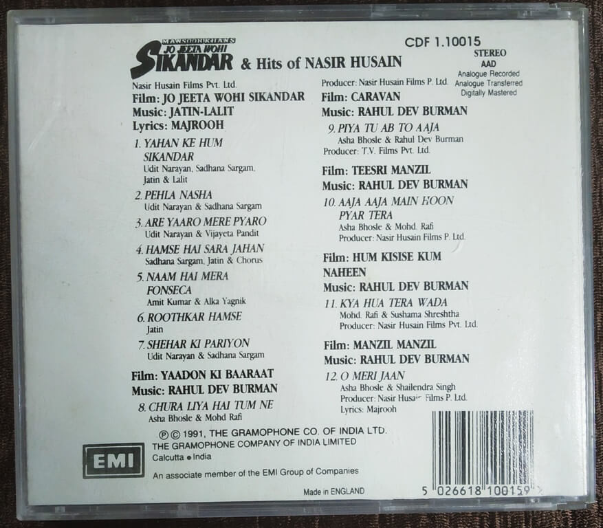 | Title | : | Jo Jeeta Wohi Sikandar / Hits Of Nasir Husain |