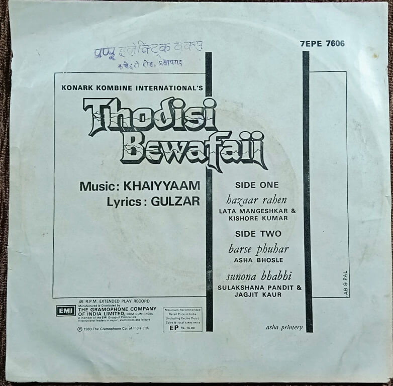 | A1. Hazaar Rahen | : | Lata Mangeshkar & Kishore Kumar |