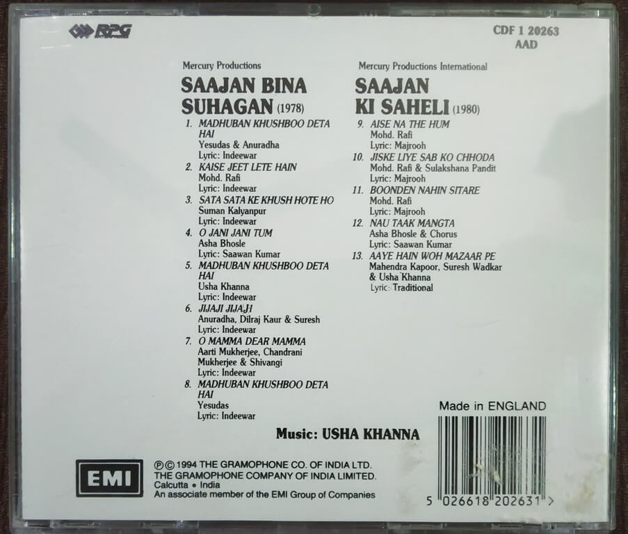 | Music Direction Of Saajan Bina Suhagan | : | Usha Khanna |