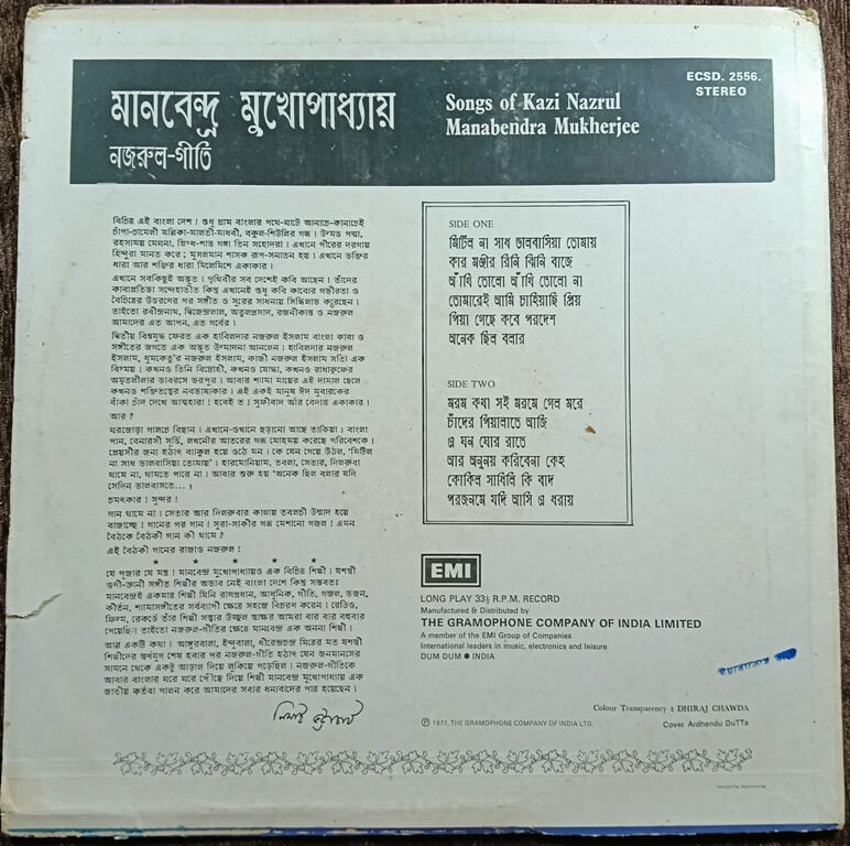 | Title | : | Manabendra Mukherjee – Songs of Kazi Nazrul |