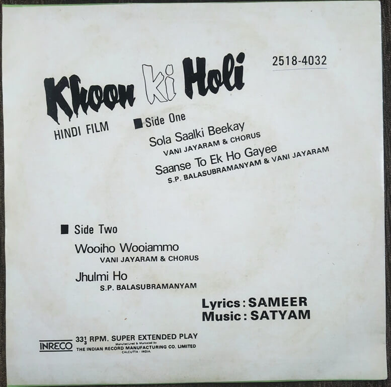 | A2. Saanse To Ek Ho Gayee | : | S.P. Balasubramanyam & Vani Jayaram |