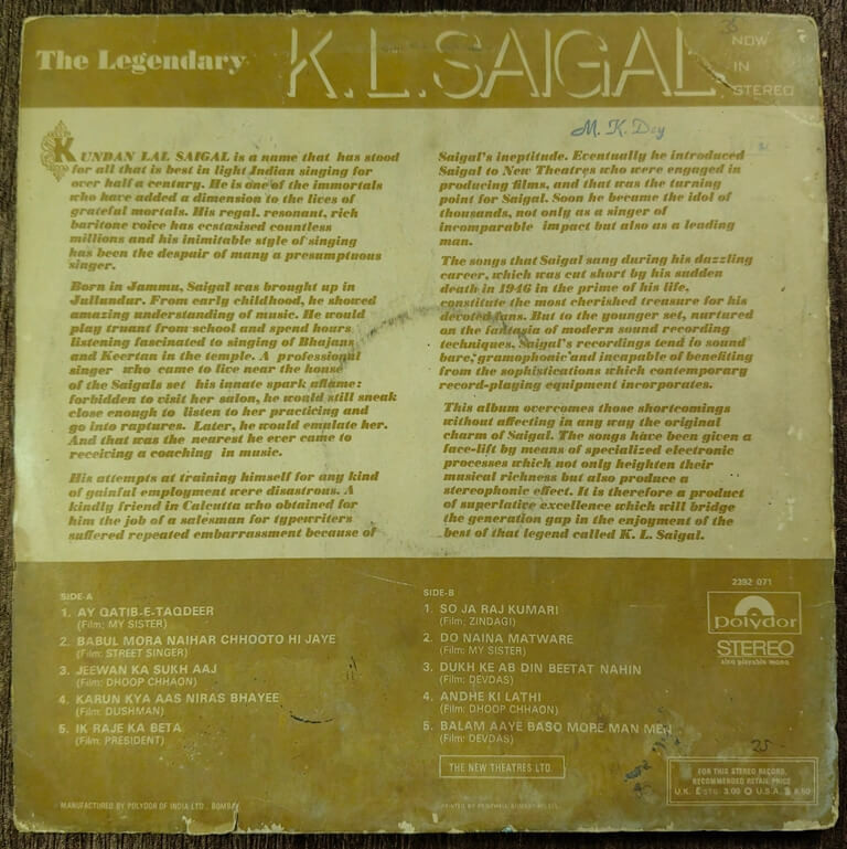 | A3. Jeewan Ka Sukh Aaj | : | K.L. Saigal |