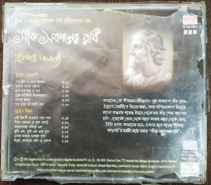 | Title | : | Srikanto Acharya -Sanjh Sakaler Rabi - Rabindrasangeet |