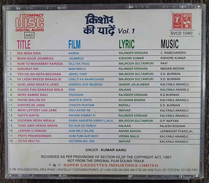 | Title | : | Kumar Sanu - Kishore Kumar Ki Yaaden Vol 1 |