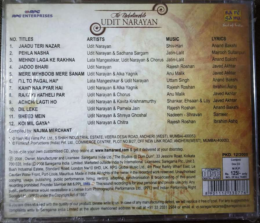 | Title | : | Udit Narayan - The Unbelievable |